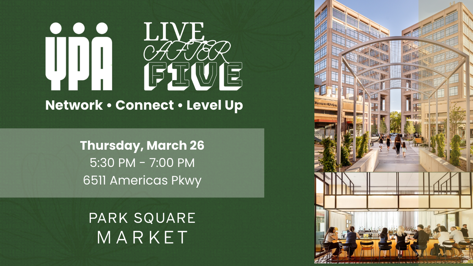 Join YPA for an amazing social event at Park Square Market! Park Square Market is one of Albuquerque’s newest downtown hangouts brought to you by the makers of Sawmill Market. This upscale urban food market showcases the best of local culinary talent, and places a focus on supporting homegrown businesses. Come expand your network, meet like-minded professionals, and enjoy the best of our city’s growing scene at this beautiful market in the Uptown area!